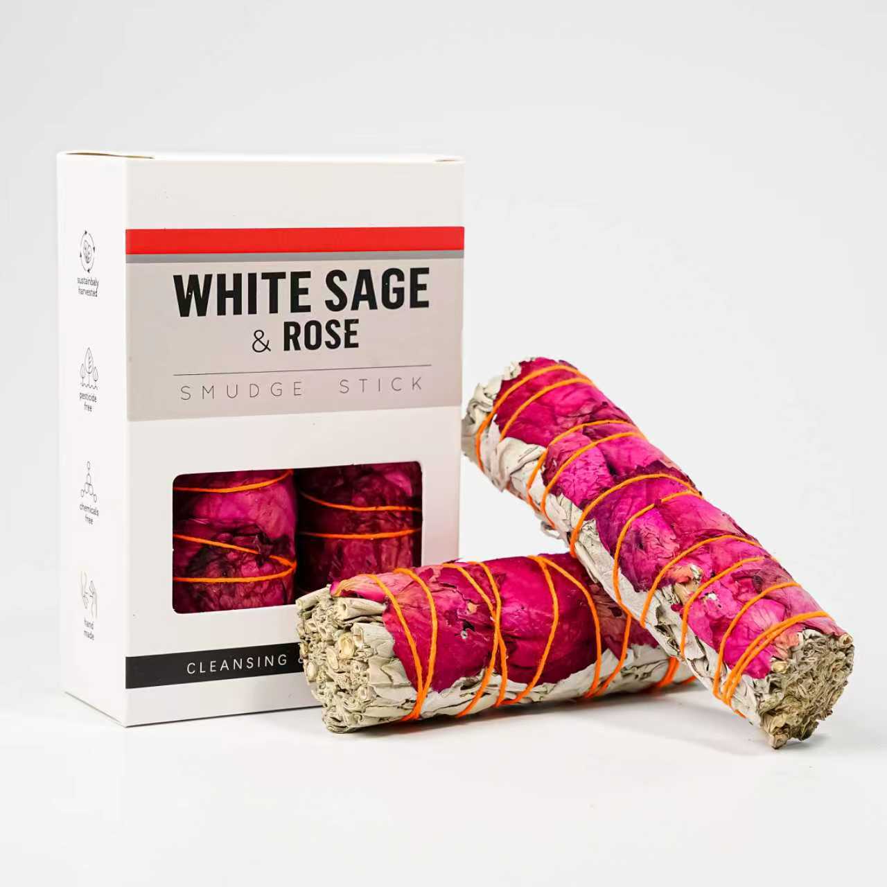 ★This smudge stick made of white sage and dried petals brings a great mood! ★White sage is known for its positive properties when purifying rooms★ It can also be used in smaller amounts for room fragrance. A stick can be used multiple times. ★Dried and hand-tied.